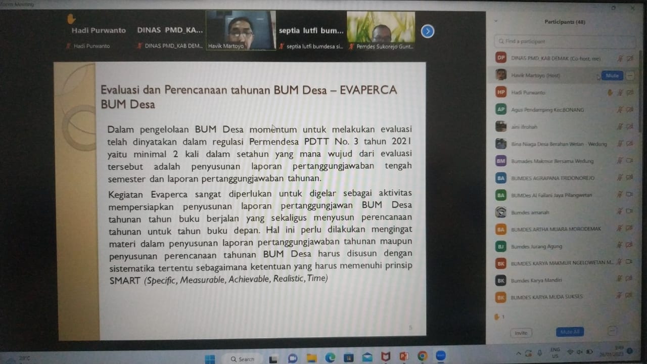 BUM Desa dan BUMDESMA (BUM Desa Bersama) Di Dem... DEMAK - 26 Januari 2023, telah digelar kegiatan Bimbingan Teknis kepada BUM D... 2023-02-02 13:17:38 Read More