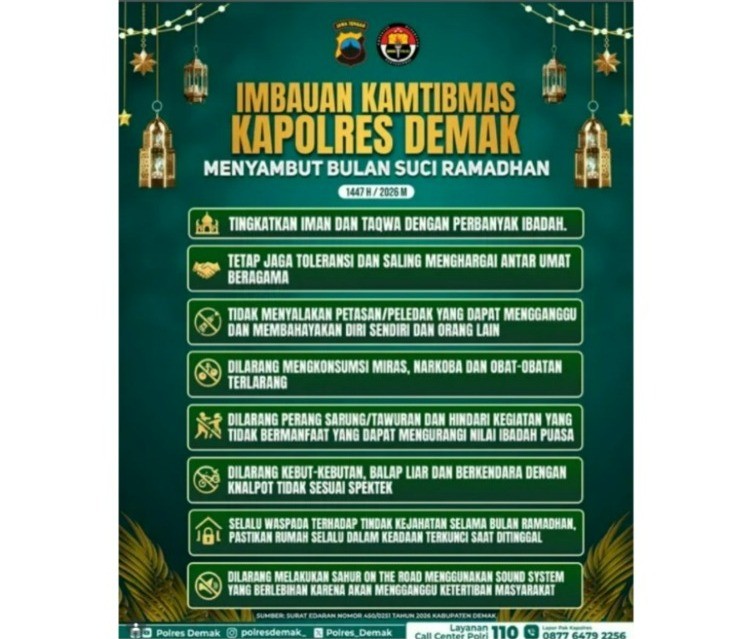 Kapolres Demak Sampaikan Himbauan Kamtibmas Sam... DEMAK - Kapolres Demak AKBP Arizzal Samelino menyampaikan himbauan kepada sel... 2026-02-20 10:31:14 Read More