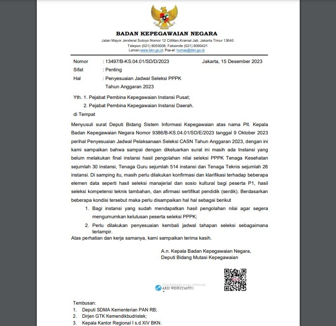 Pengumuman Kelulusan PPPK Ditunda DEMAK – BKPP Demak melalui postingan instagram resminya @bkppdemak, Sab... 2023-12-18 14:03:21 Read More