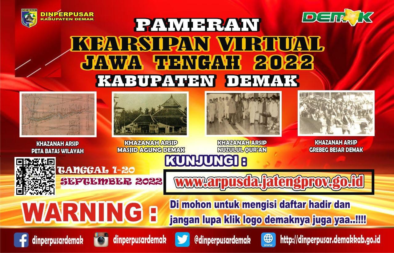 Ayo Kunjungi Pameran Kearsipan Virtual Kabupate... DEMAK – Dinas Kearsipan dan Perpustakaan (Arpus) Provinsi Jawa Tengah b... 2022-09-06 10:44:21 Read More