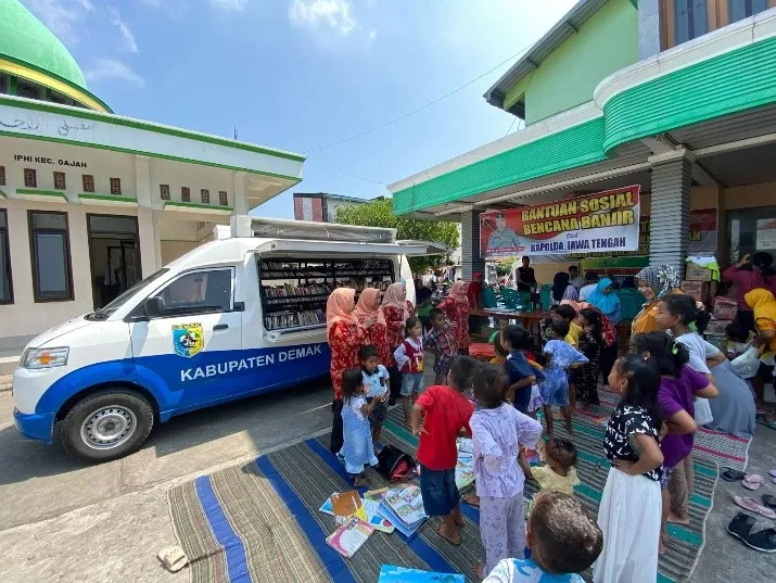 Dharma Wanita Dinperpusar Melakukan Kegiatan Trauma Healing Warga Pengungsi Banjir Karanganyar