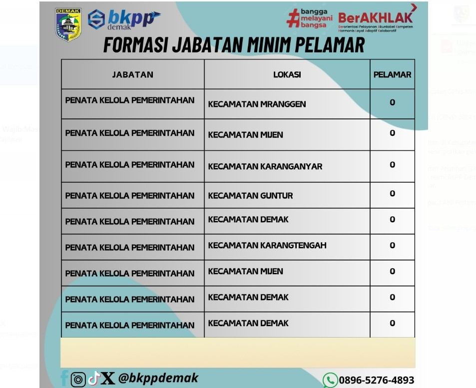 Pendaftaran CPNS Kurang Empat Hari, Masih Ada F... DEMAK - Pendaftaran Calon Pegawai Negeri Sipil (CPNS) 2024 di lingkunga... 2024-09-03 11:34:42 Read More