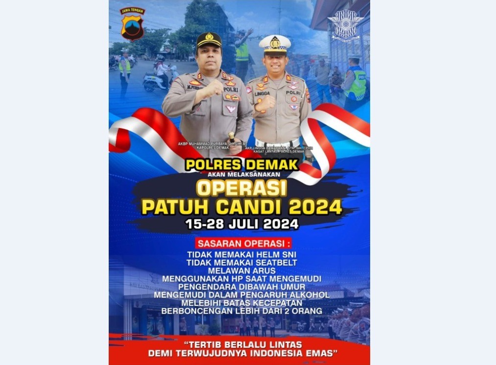 Operasi Patuh Candi untuk Tekan Angka Kecelakaa... DEMAK - Memasuki hari ke lima pelaksanaan operasi patuh candi 2024 oleh Satla... 2024-07-19 11:15:11 Read More