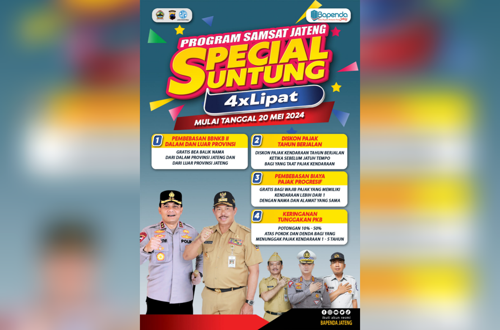 Samsat Jateng Luncurkan Program 'Empat Kali Lip... DEMAK - Dalam rangka meningkatkan kepatuhan wajib pajak dan mendukung pemulih... 2024-06-14 13:49:51 Read More